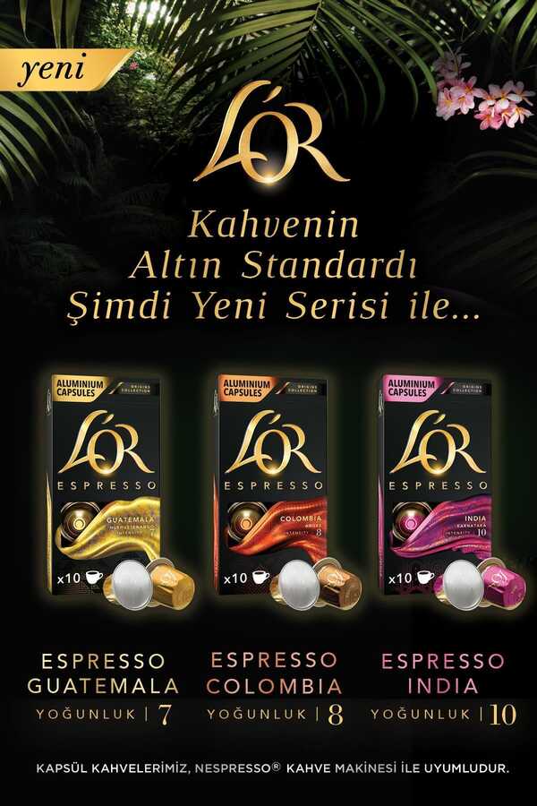 * L'OR kapsül kahveleri, Nespresso®* kahve makinesi ile uyumludur. Ticari marka, Jacobs Douwe Egberts ile ilgisi olmayan üçüncü bir taraftır.