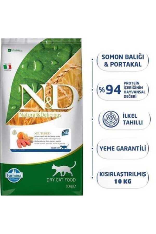 N&D Düşük Tahıllı Somonlu Kısırlaştırılmış Yetişkin Kedi Maması 10 KG