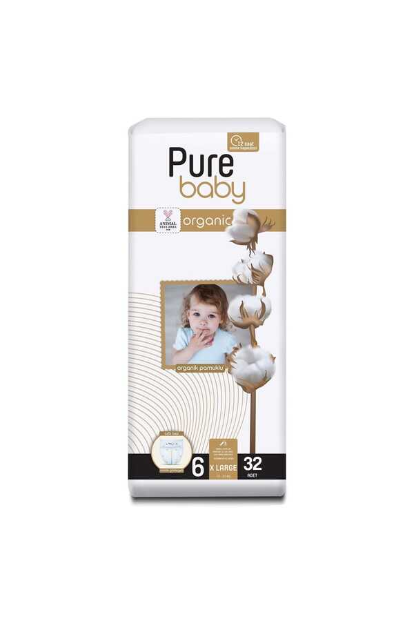 Pure Baby Organik Pamuklu Cırtlı Bez Tekli Paket 6 Numara Xlarge 32 Adet
