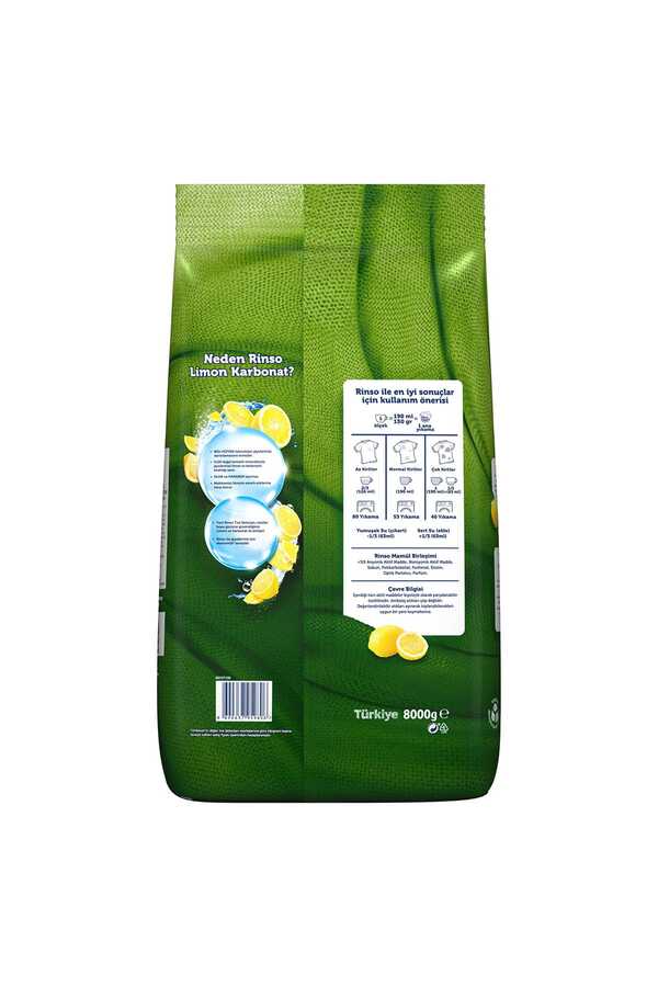 Rinso Limon ve Karbonat Renkliler ve Beyazlar için Toz Çamaşır Deterjanı 53 Yıkama 8 Kg