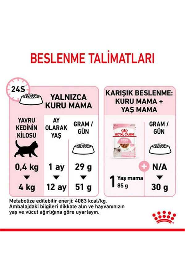 Royal Canin Box Kitten Yavru Kedi Maması 2 KG + 2 Adet Kitten Yaş Mama Hediyeli sayesinde, büyüme döneminde olan yavru kedilerin ihtiyaç duyduğu günlük besin ihtiyacı karşılanabilir.